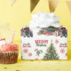 The repeated pattern on this Christmas wrapping paper includes an image of a beautiful Giant Schnauzer Dog wearing a festive red bow. The dog sits in front of a decorated Holiday tree. Stylised red and green text says MERRY CHRISTMAS", and your own signature is in two fields for you to customise. Other images included in the pattern include red decorative snowflakes, candy canes, and a peppermint lolly pop.