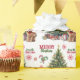 The repeated pattern on this Christmas wrapping paper includes an image of a beautiful Golden Retriever Dog wearing a festive red bow. The dog sits in front of a decorated Holiday tree. Stylised red and green text says MERRY CHRISTMAS", and your own signature is in two fields for you to customise. Other images included in the pattern include red decorative snowflakes, candy canes, and a peppermint lolly pop.