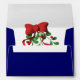 This envelope is designed with a red bow with ribbon streaming down over a branch of green holly and red berries. On the back is the image with "Merry Christmas" printed under it. This envelope matches the card and stamp "Red Bow and Holly". Customise the addresses on the card.