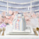 This coquette baby shower favor box features a red bow on a cream background with pale blue stripes. Personalize it for your needs. You can find matching products at my store.