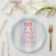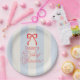 This coquette baby shower paper plate features a red bow on a cream background with Pale blue stripes. Personalize it for your needs. You can find matching products at my store.