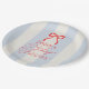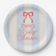 Red Bow & Pale Blue Stripes Baby Shower Paper Plate