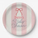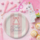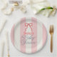 Red Bow & Pink Stripes Baby Shower Paper Plate