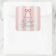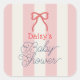 Red Bow & Pink Stripes Baby Shower Square Sticker