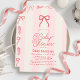 Red Bow & Pink Stripes Girl Baby Shower Invitation