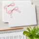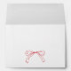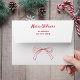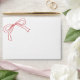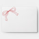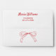 White background. Personalise and add a name and your return address. The name is written with a modern and trendy handlettered style script. Decorated with a hand-drawn red bow.