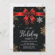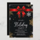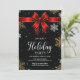 Red Bow Snowflake Black and Gold Holiday Christmas Winter Party Glitter Invitation
