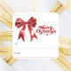 White background, and a red hand-drawn bow. A to/from tag. space for you to write by hand. Text: Merry Christmas with a retro 70's style font.