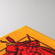 8x8 canvas. Digital image of a pair of red boxing gloves shaded and outlined in black. The gloves are partially framed by a reddish black outline in the shape of a square.Stylish design. Background is a golden yellowish watercolor texture.