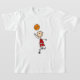 A stick figure boy basketball player with a basketball and red uniform on Red Boys Basketball t-shirts, hoodies, mugs, tote bags, cards, stickers, and other basketball player apparel and gifts.