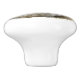 This cute ceramic door knob features a Red Breasted Nuthatch who looks like he is taking charge! He is a very small bird with a rust coloured breast, blue and grey back and a black and white eye stripe. His head and beak are very large in proportion to his body.