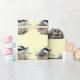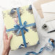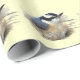 This wrapping paper is decorated with a repeating pattern of the Red-breasted Nuthatch who looks like he is taking charge! He is a very small bird with a rust coloured breast, blue and grey back and a black eye stripe on his white face. His head and beak are very large in proportion to his body.