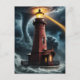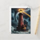 Red brick lighthouse in tornado postcard
