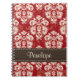 This elegant red, cream and chocolate brown damask spiral notebook cover can be personalised with your name on the stitched ribbon design. This custom notebook with a baroque meets French Country style looks sophisticated, luxurious and upscale. Use it as a journal, diary or for general note keeping. Great for home office supplies or back to school use. Artwork © Chrissy H. Studios, LLC. All Rights Reserved.