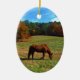Red Brown horse, fall trees, blue skies Ceramic Tree Decoration