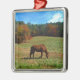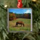 Red Brown horse, fall trees, blue skies Metal Tree Decoration