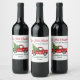 Modern Brush Script Our First Christmas in our New Home Holiday Wine Bottle Label includes Watercolor Vintage Red Truck with Christmas Tree - Red Script