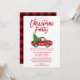 Red Brush Script Truck Plaid Christmas Party Invitation