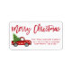 Brush Script Watercolor Vintage Red Truck with Christmas Tree - Merry Christmas Family Return Address Label