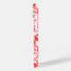 This phone case has a mid-century modern design of red concentric circles scattered about the whole design.
