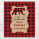 Joyful Birthday/Lumberjack Party invitation featuring red plaid bear silhouette, a beautiful rustic old paper shape with dotted frame for info, on a red buffalo background. Use Customise tool to add your info. See, also, my Red Buffalo Plaid/Lumberjack Party Collection for matching items.