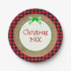 Red Buffalo Plaid and Burlap Christmas with Year Paper Plate
