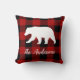 Red Buffalo Plaid & Bear | Personal Name Gift Cushion