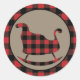 Red Buffalo Plaid Border Christmas Sleigh Classic Round Sticker