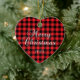 Red Buffalo Plaid Merry Christmas Couple Photo Ceramic Tree Decoration