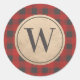 Red Buffalo Plaid Monogram Classic Round Sticker