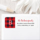 Red buffalo plaid return address labels with single initial featuring monogrammed black and red pattern. Easily customise Christmas return address stickers with your own text.