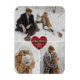 Create a beautiful photo holiday magnet featuring 3 photos decorated with falling snow and a red buffalo plaid heart.