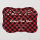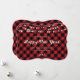 Simple, yet elegant red buffalo plaid New Year card featuring string lights on a red buffalo plaid background. Easily personalize online.