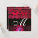 RED BURGUNDY BLACK DAMASK MONOGRAM , ruby white Invitation
