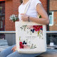 Red Burgundy Blush Blue Floral Bunch Bridesmaid Tote Bag