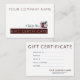Elegant trendy Christmas / winter holidays gift certificate featuring a dark burgundy stripe and a small winter peonies bouquet with seasonal foliage, red berries, and fir branches in dark burgundy and green.++++++++ Personalise it with your details! ++++++++ Suitable for any service business for Christmas marketing promotional branded events / open house / parties.