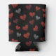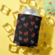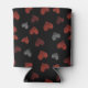 Red Burgundy Silver Glitter Hearts on Black Can Cooler
