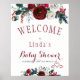 Red burgundy watercolor winter bouquet baby shower poster