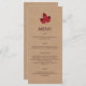 On a burlap coloured background a subtly monogrammed red maple leaf highlights this menu.