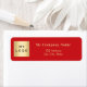 A red background, golden text. Personalise and add your comapny name, address and business logo.