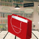Red business name text paper shopping bag