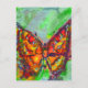 RED BUTTERFLY IN BLUE GREEN TEAL GOLD SPARKLES POSTCARD
