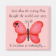 Beautiful butterfly motivational quote in red on a magnet. "Just when the caterpillar thought the world was over, it became a butterfly.."