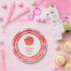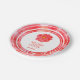 Pretty red camellia flower wedding custom paper plates. A contemporary wedding disposable plate featuring a camellia watercolor art painting. Perfect for a red spring or late winter wedding. Edit these paper plates with your own words. Original watercolor painting and design by Sarah Trett. www.sarahtrett.com for www.mylittleedenweddings.com