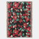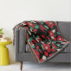 RED CAMELLIAS,WHITE GREEN LEAVES BLACK Dark Floral Throw Blanket