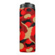 Red, black, beige and dark cherry colours combined in a camouflage design.