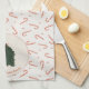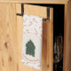 Festive candy cane kitchen towel with red stars and a pine tree design. Features a customisable area for your family name — a perfect personalised holiday gift or Christmas kitchen decor accent.