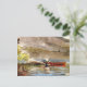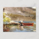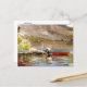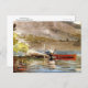 A fine art postcard with the watercolor, The Red Canoe (1884), by the American artist from the realism movement, Winslow Homer (1836-1910). A landscape of a man fishing from a canoe,