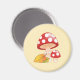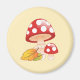 Red Cap Toadstool Mushrooms with Leaves on Yellow Magnet