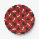 Red Caps Diplomas Pattern Graduation Party Paper Plate